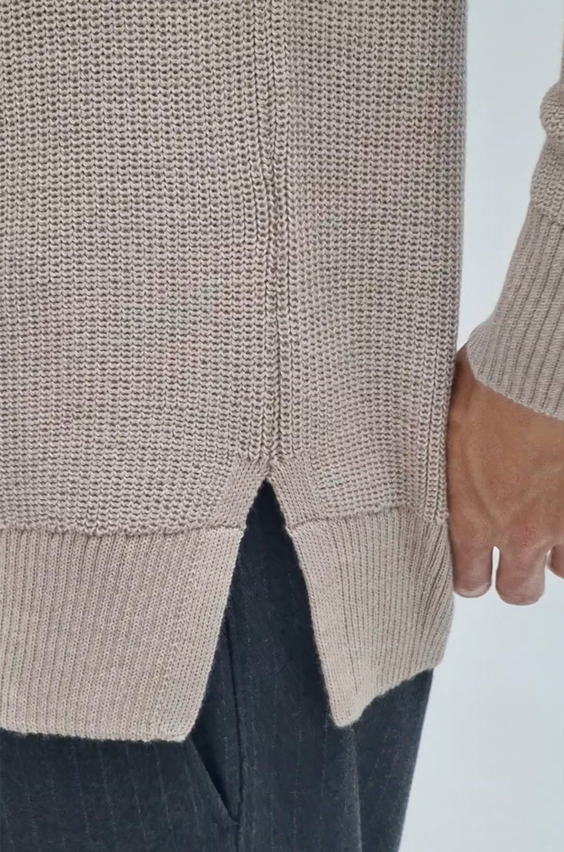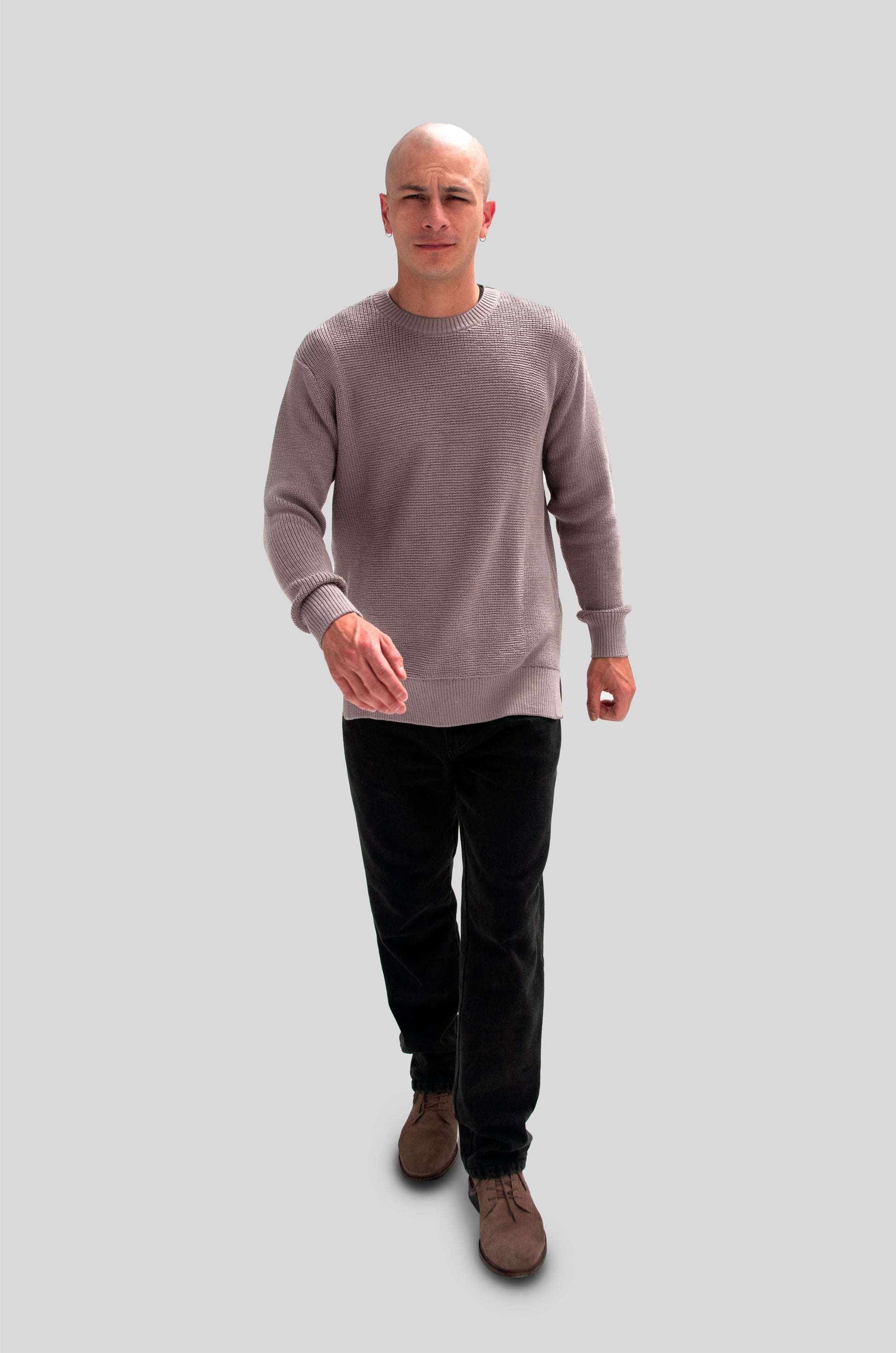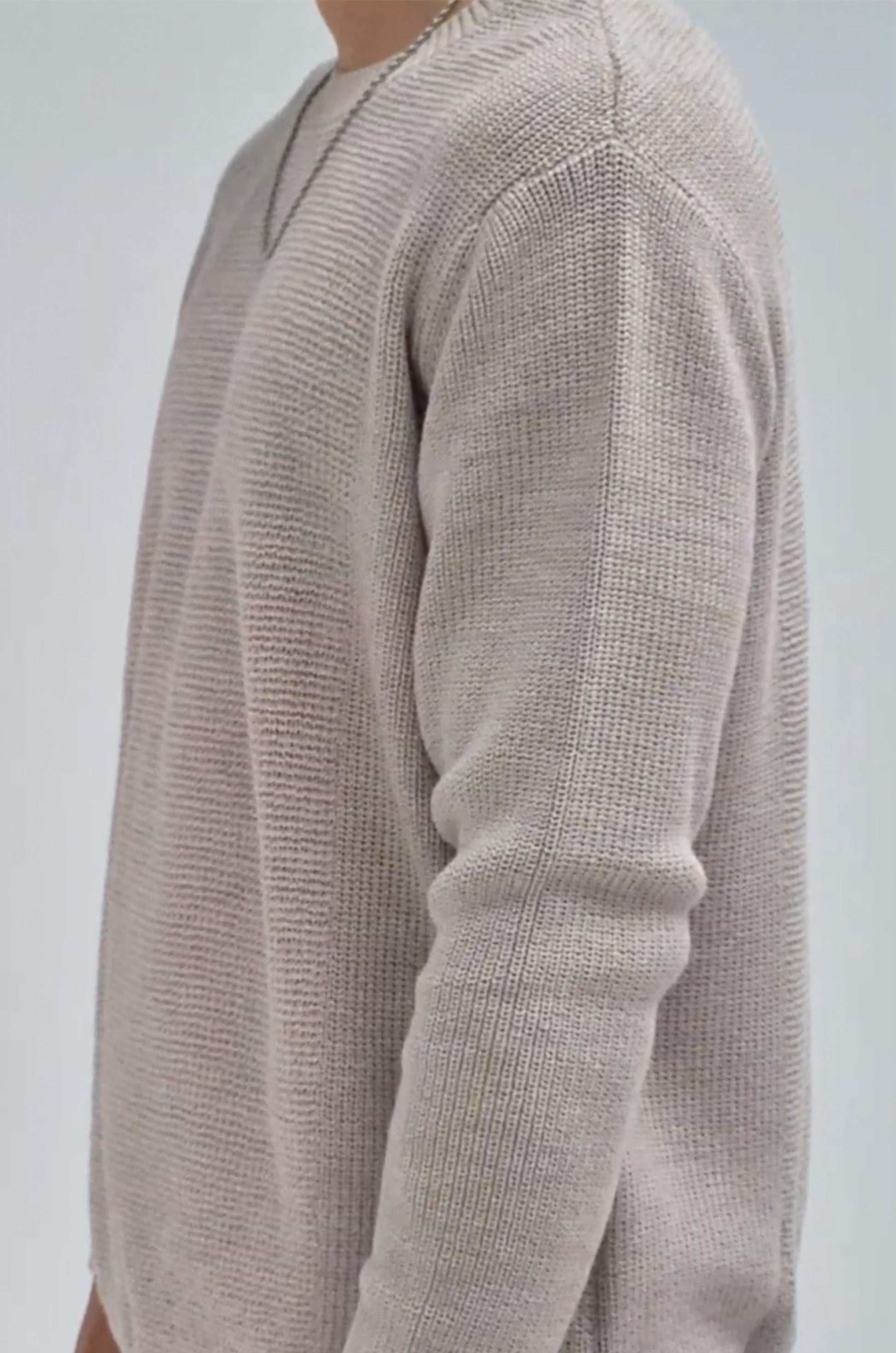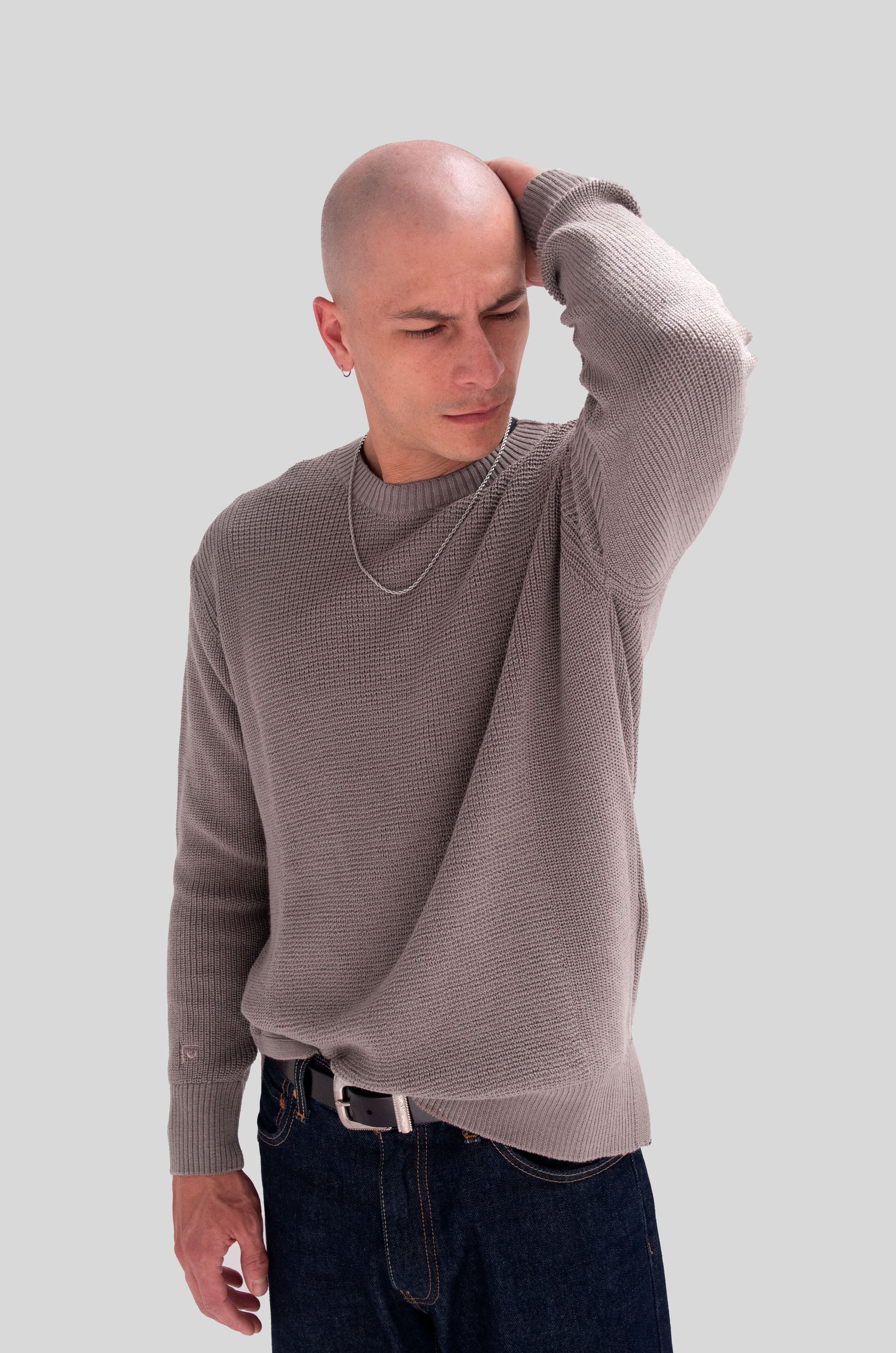 Saco cuello redondo en lana Merino, tejido grueso y textura suave. Lleva un bordado en manga y abertura en costados. Este es una saco de silueta amplia, para lograr un fit más oversize escoger una o dos tallas más de la habitual.