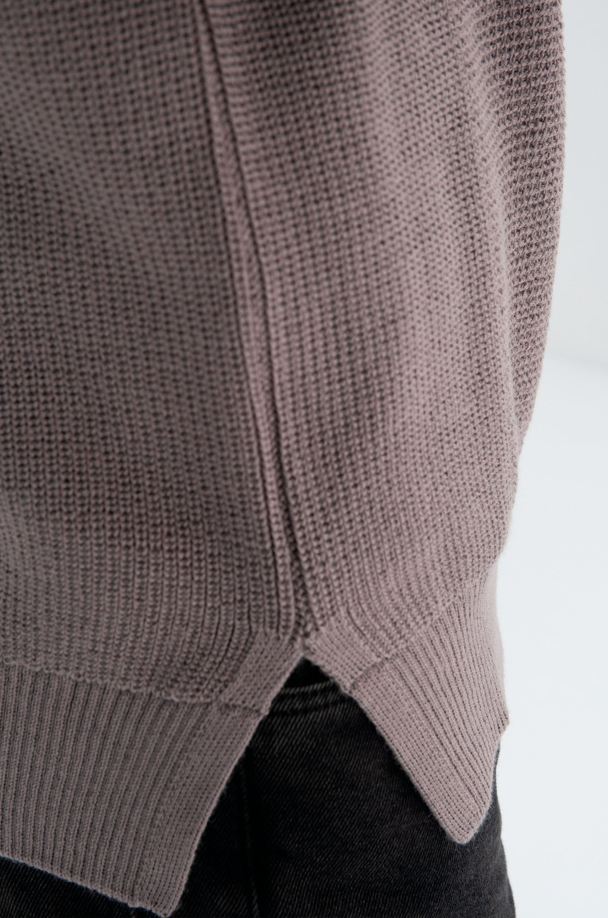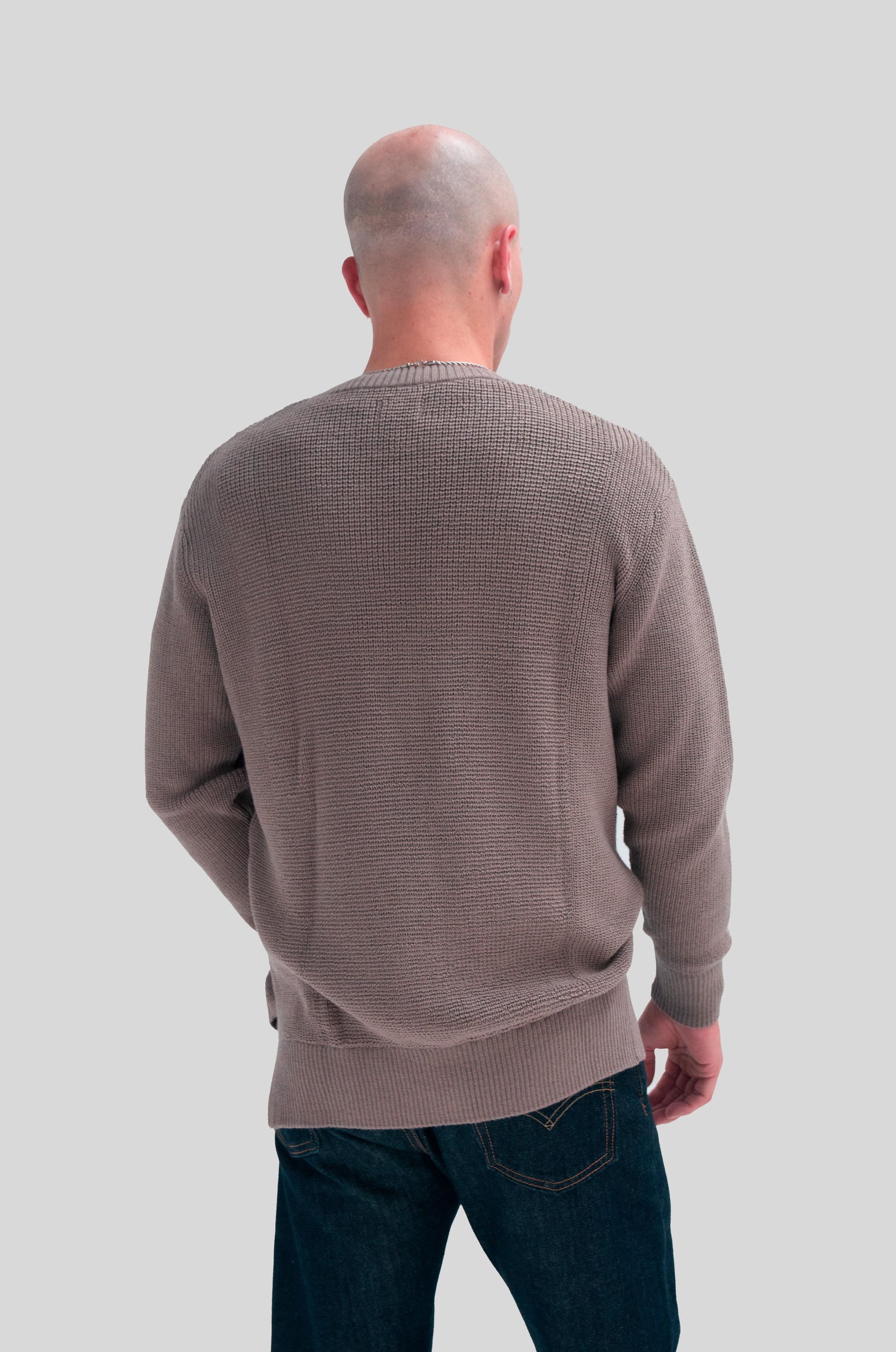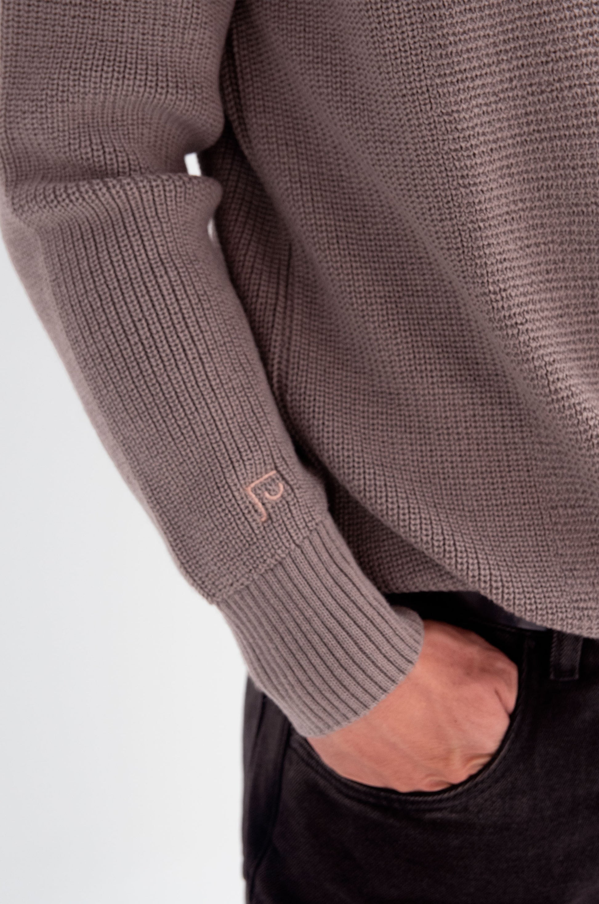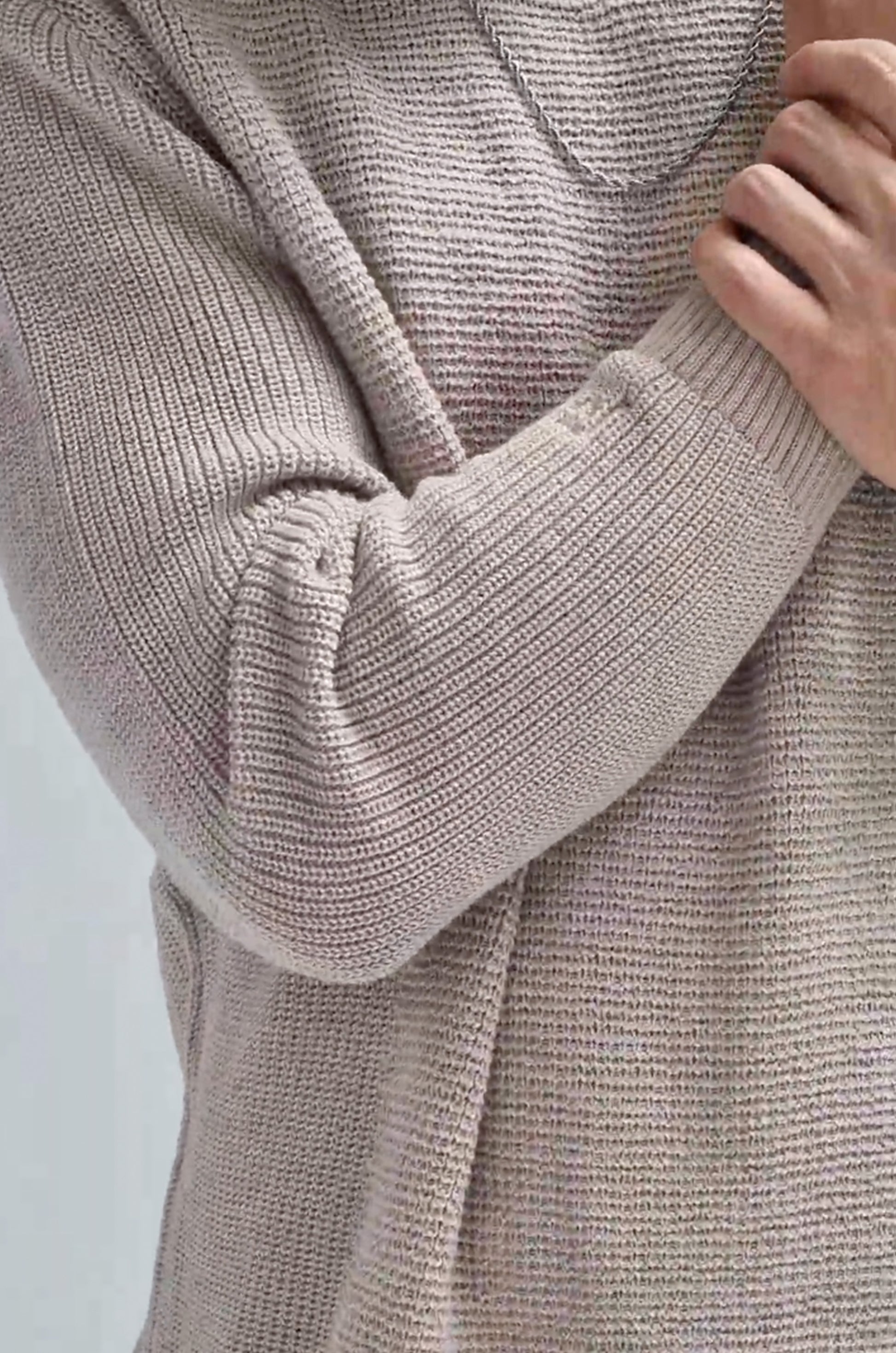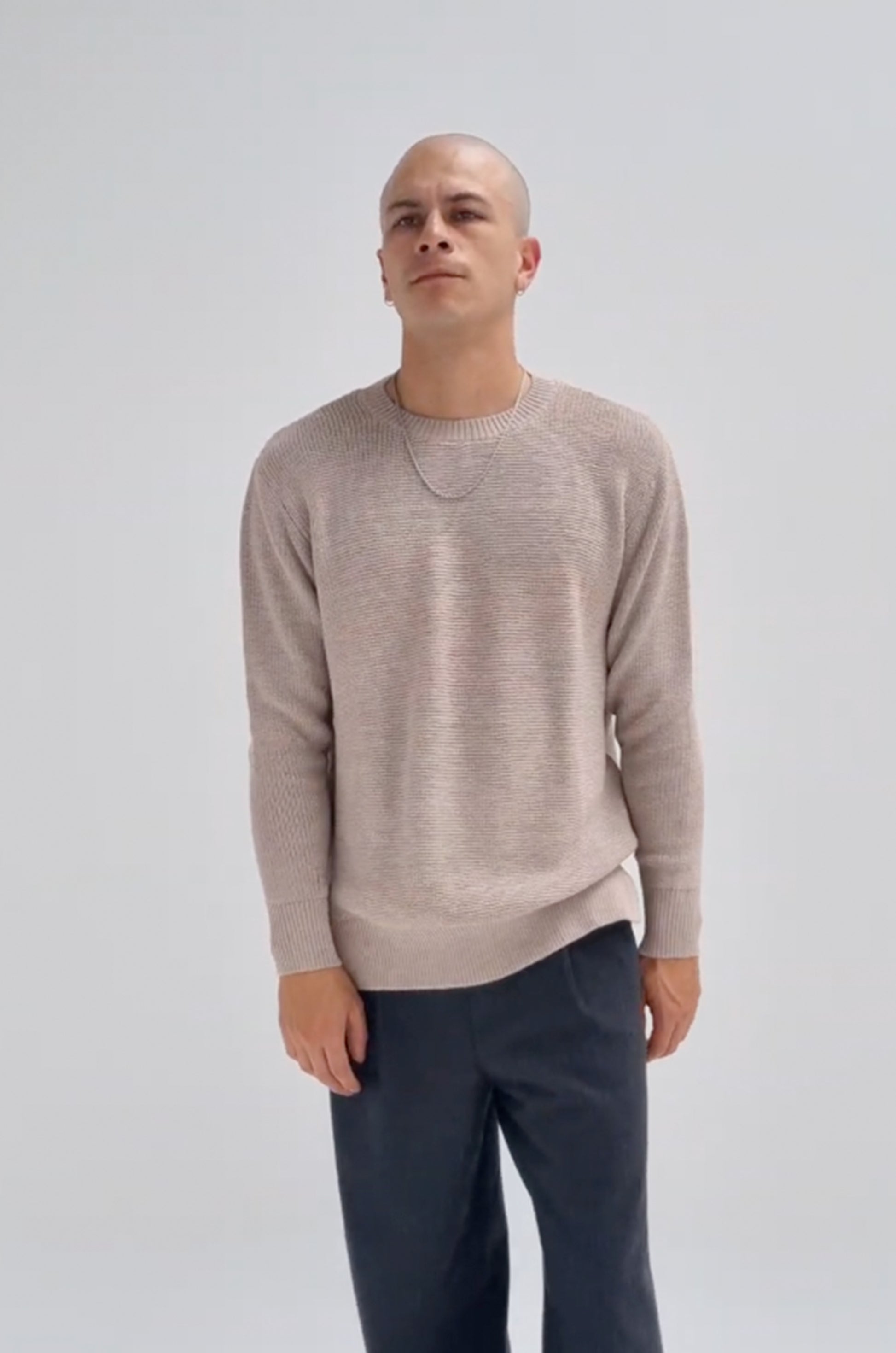 Saco cuello redondo en lana Merino, tejido grueso y textura suave. Lleva un bordado en manga y abertura en costados. Este es una saco de silueta amplia, para lograr un fit más oversize escoger una o dos tallas más de la habitual.