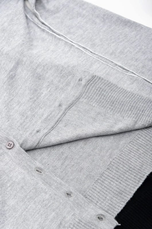 Cardigan 7 botones, tejido Jersey en mezcla de hilo Modal (Algodon). Detalle de vena contraste (blanca) en costados y bordado en manga.